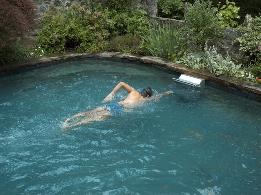 Protitočna plavalna naprava je zelo priporočljiva pri manjših bazenih, kjer ni možno plavanje po bazenu gor in dol.