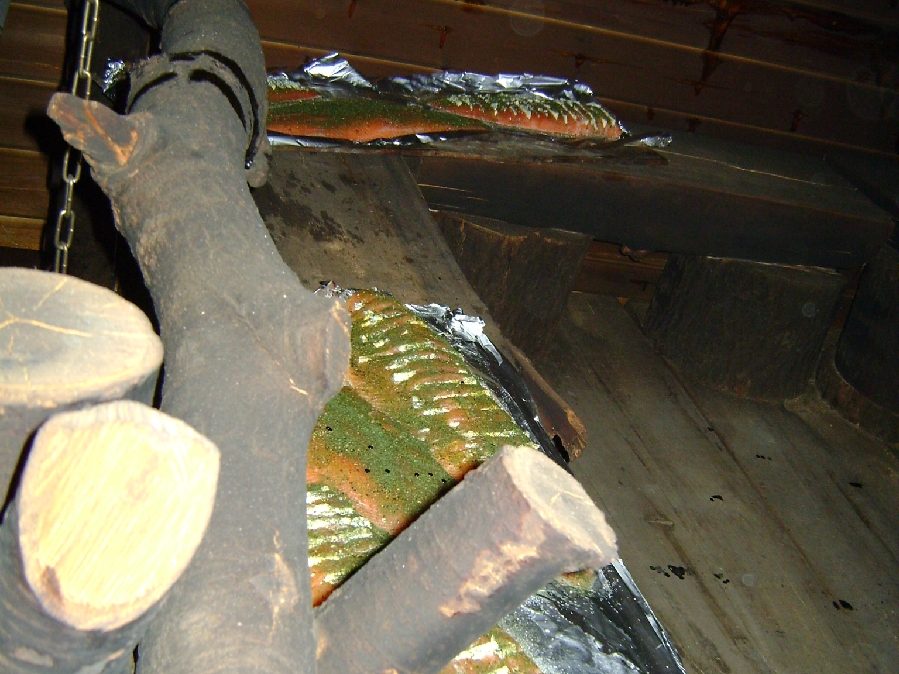 Tako se dimna savna segreje do cca 180°C in se uporablja za pečenje hrane. Ponavadi je to meso in ribe za pripravo kosila.